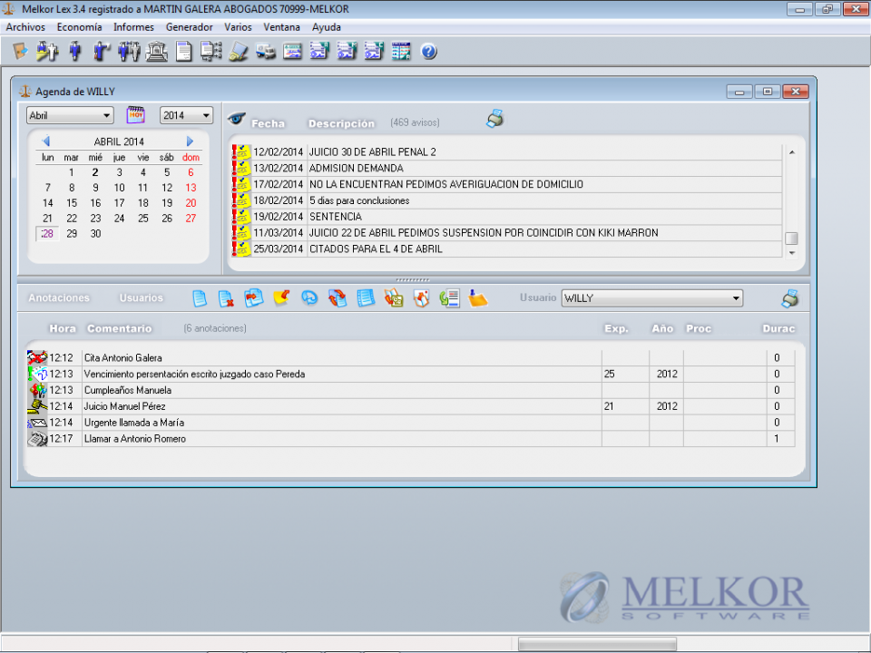 bufetes de abogados y departamentos legales corporativos, capaz de administrar todos los expedientes, escritos, plazos y la agenda, así como la facturación y todos los aspectos económicos y fiscales del bufete con un solo programa de fácil uso.